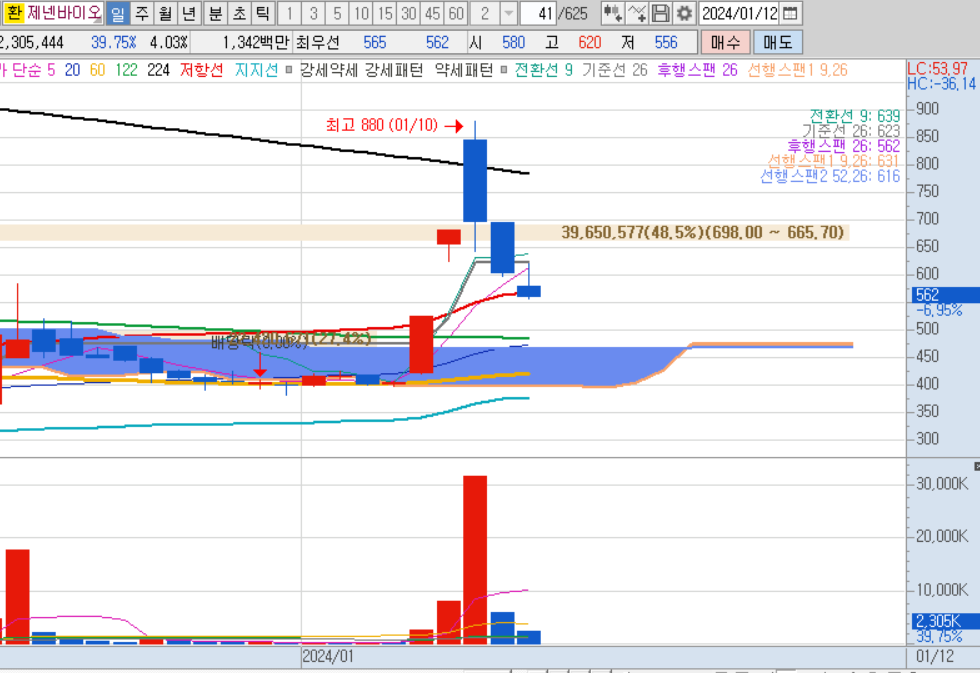 제넨바이오는 이날뿐 아니라 다음날까지도 상한가를 갔습니다.